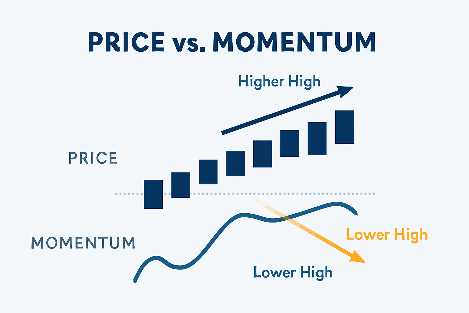 This mismatch signals that momentum is weakening and that a possible reversal or correction may be near.